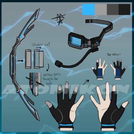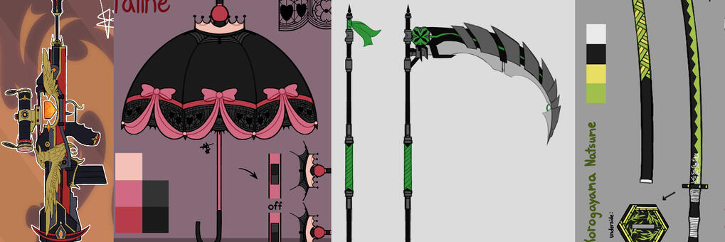 3) Color PaletteYou can add another weapon onto sheet for $5 each (up to 4). Weapons will be designed in profile unless alternate angles are requested for an extra $2 each.Extra things that can be displayed on the sheet (free):